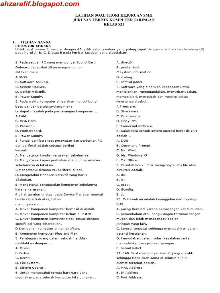 Pembahasan soal uji kompentensi keahlian ukk smk tkj paket. 5 jurusan smk yang. Dalam soal paket 1 kita.
