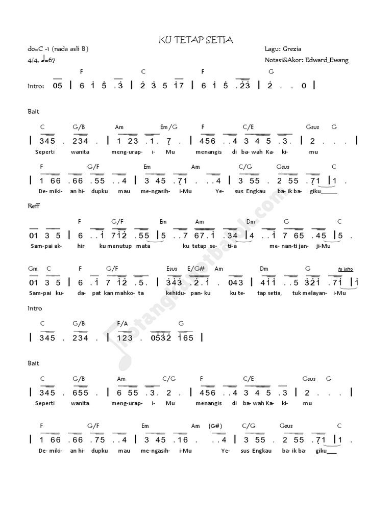 Ku Tetap Setia Grezia Not Angka Lirik Dan Akor